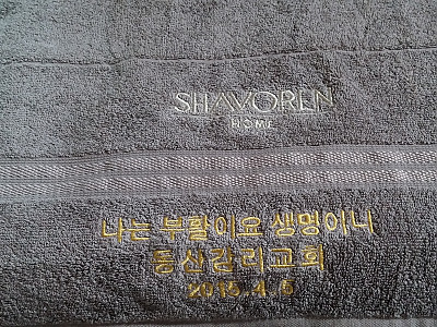 김기보 권사님의 찬조로 15년 부활절 기념 수건을 제작하다.