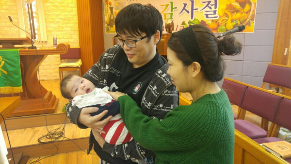 16년 추수감사절 유아세례식 유아: 김태민, 부:김홍식, 모: 장혜미
